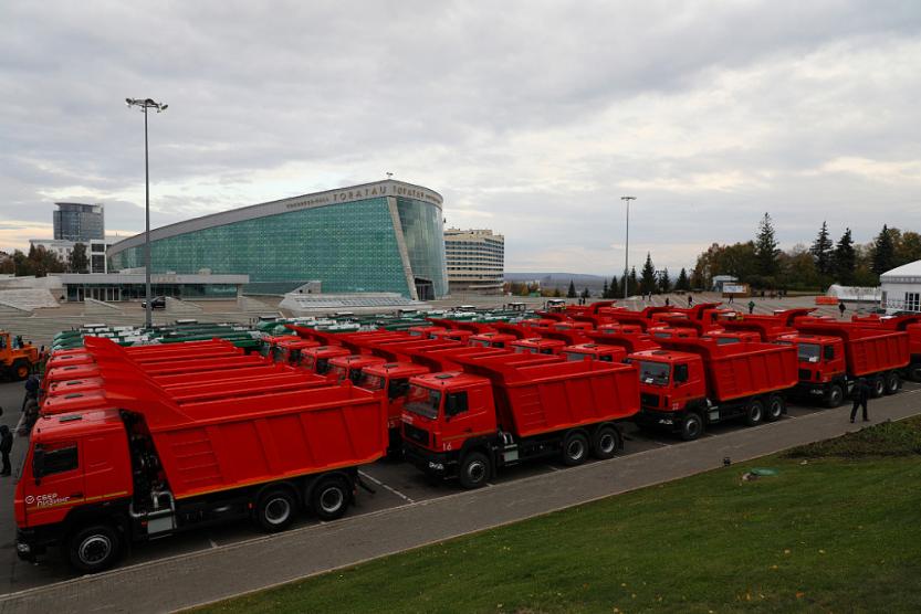 Предприятия городов и районов получили 34 автосамосвала, 15 тракторов, 12 фронтальных погрузчиков. Из них, в рамках мероприятия, Уфе переданы 11 машин на базе МАЗ и передадут еще 4 погрузчика. Также столица Башкортостана получила девять троллейбусов.