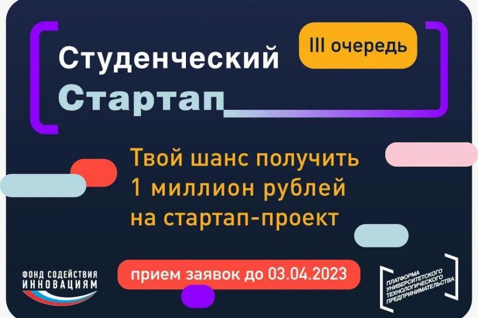 Конкурс «Студенческий стартап» - проводится для студентов и аспирантов, чьи проекты разработаны на основе собственных научно-технических и научно-технологических исследований и имеют потенциал коммерциализации.