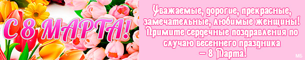 Милые женщины! Примите самые теплые и искренние поздравления с замечательным весенним праздником – Международным женским днем 8 Марта!