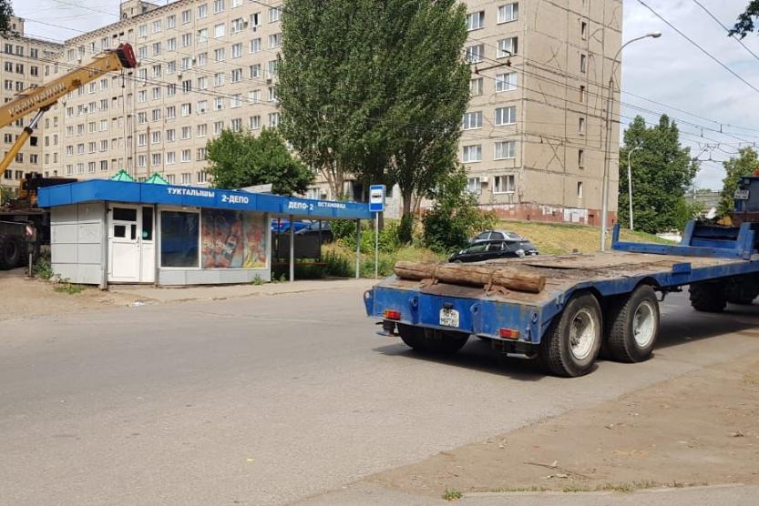 Сегодня работники службы по благоустройству собственными силами демонтировали самовольно установленный торговый объект расположенный на улице Кольцевая, рядом с домом № 199, на остановке общественного транспорта «Троллейбусное депо-2».