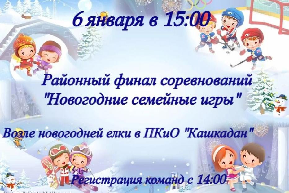 Если это про вас, то слушайте. 6 января стартует районный финал соревнований «Новогодние семейные игры». Встречаемся в 15.00 ч. в парке «Кашкадан» (регистрация с 14.00 ч.).