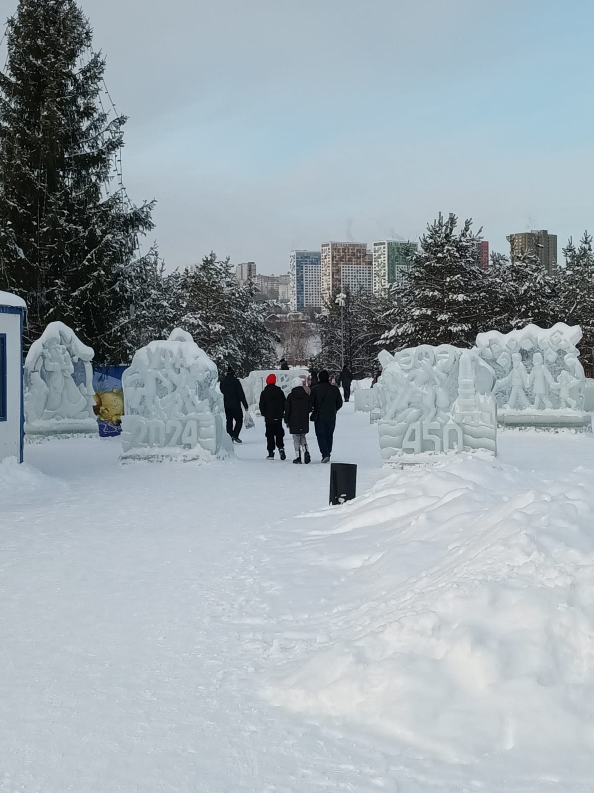 Одним из самых популярных развлечений для маленьких и взрослых посетителей ожидаемо стало катание на коньках на площадке, расположенной возле старого надземного перехода. Как раз на наших глазах готовили лед и расчищали дорожки.