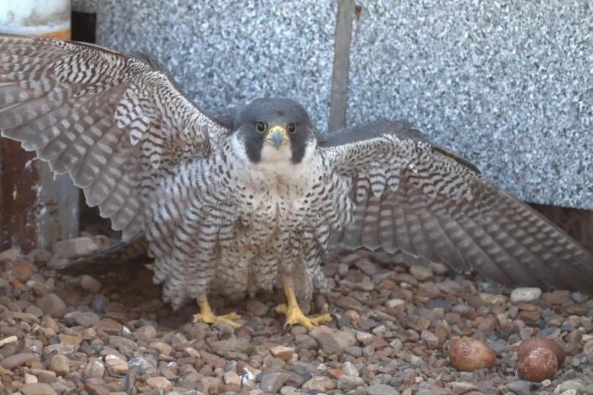 Сегодня, 2 мая, дежурный орнитолог Эльза Габбасова сделала снимки. По её словам, визуально яйца в кладке обычного размера, типичного для соколов ярко-бурого окраса, без признаков деформации.