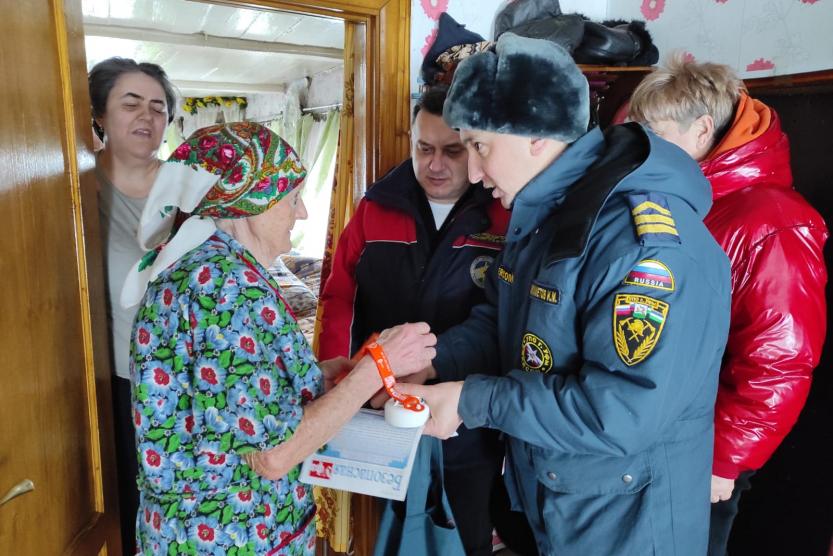Сегодня заместитель председателя Государственного комитета Республики Башкортостан по чрезвычайным ситуациям Александр Лопухов вручил браслет женщине, которая входит в социальную категорию граждан "Дети войны". Инженер отдела профилактики пожаров МБУ «Управление пожарной охраны города Уфы» Ильдус Шаймухаметов провел беседу с жильцами дома о правилах пожарной безопасности и вручил автономный дымовой пожарный извещатель. Подобные рейды проходят во всех районах города Уфы и республики.