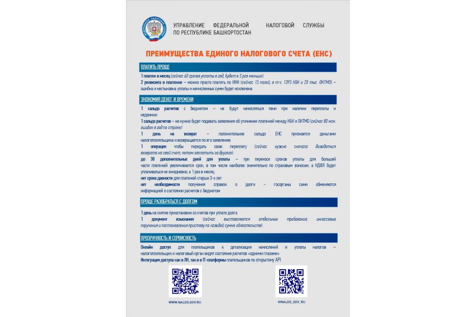 Предполагается, что налогоплательщики смогут перейти на применение единого налогового счета уже с 1 января 2023 года. Налоговая служба подготовила разъяснения в виде ответов на вопросы, касающиеся ЕНС, а также основные преимущества его применения (письмо ФНС России от 29 апреля 2022 г. № КЧ-4-8/[email protected]).