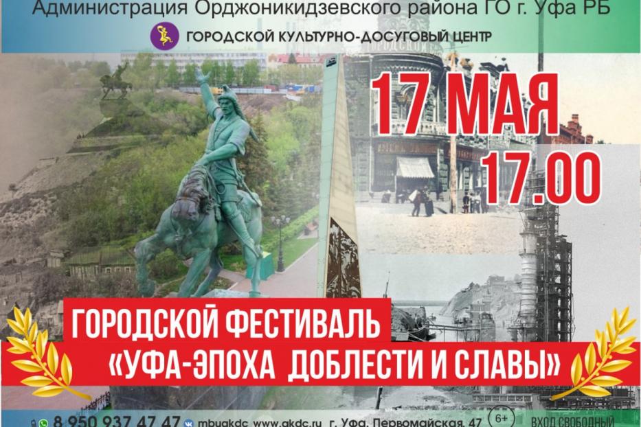 Завтра, 17 мая, в Городском культурно-досуговом центре пройдёт районный этап фестиваля «Уфа: эпоха доблести и славы». В формате замысловатой творческой программы зрителям расскажут историю развития Орджоникидзевского района.