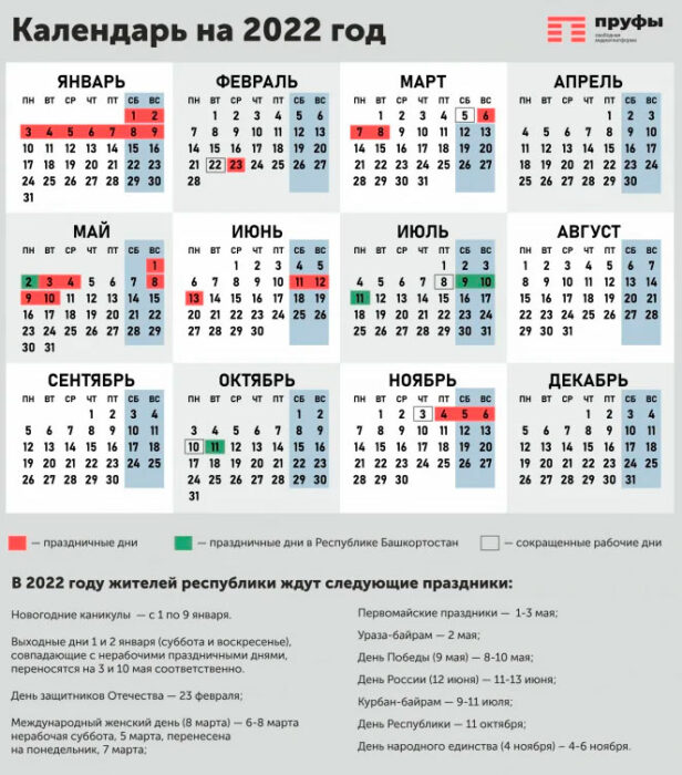 В 2022 году жители Башкирии традиционно отдохнут немного больше, чем жители большинства других регионов страны.