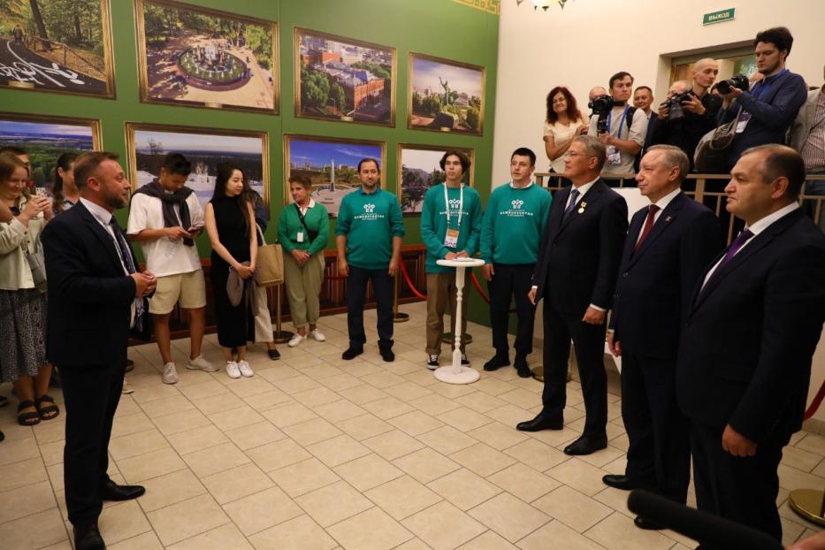 Глава Башкортостана Радий Хабиров и Губернатор северной столицы Александр Беглов посетили павильон, посвященный башкирской столице.