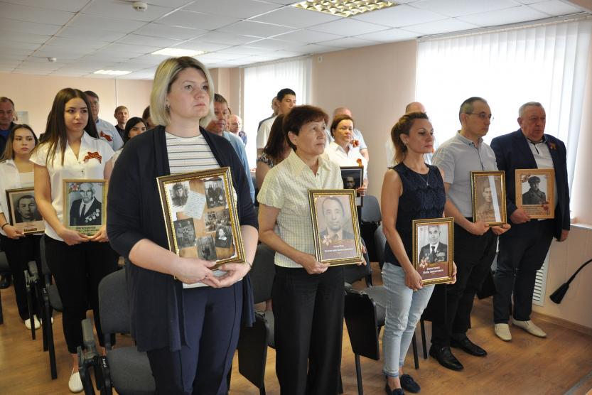 5 мая с 11.00 до 11.20 сотрудники всех подразделений учреждения с фотографиями своих Солдат–Победителей и Георгиевской лентой, одновременно со всей республикой, по единому звуковому сопровождению, почтили память погибших в Великой Отечественной войне «Минутой молчания».