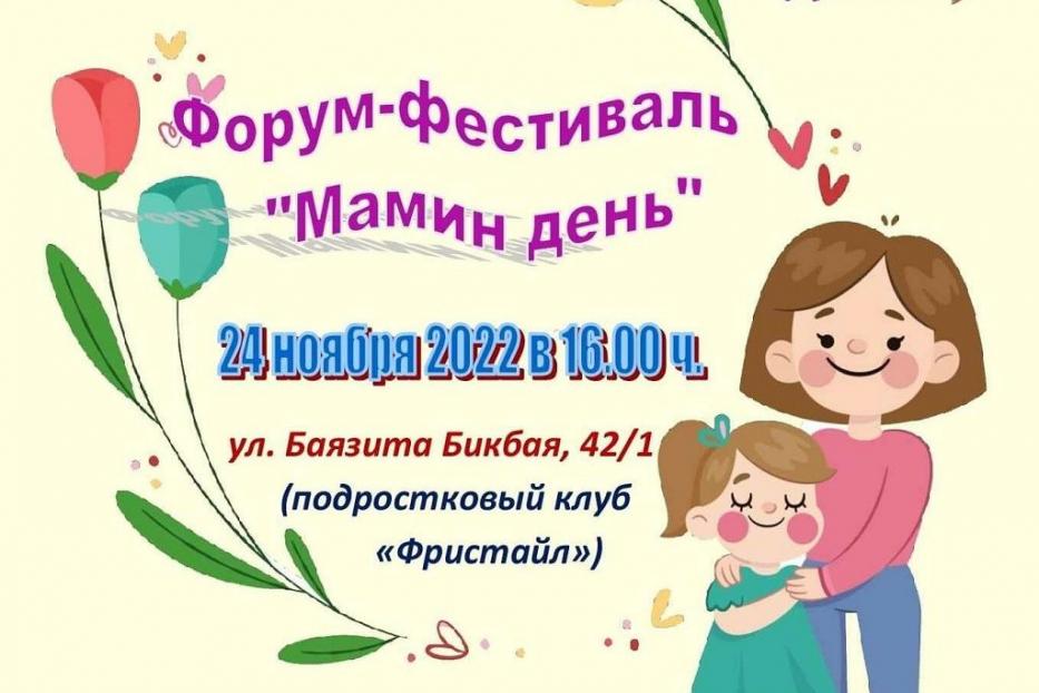 24 ноября в 16:00ч. состоится форум-фестиваль «Мамин день». Местом проведения выбран подростковый клуб «Фристайл», который находится по адресу: ул.Б.Бикбая, 42\1.