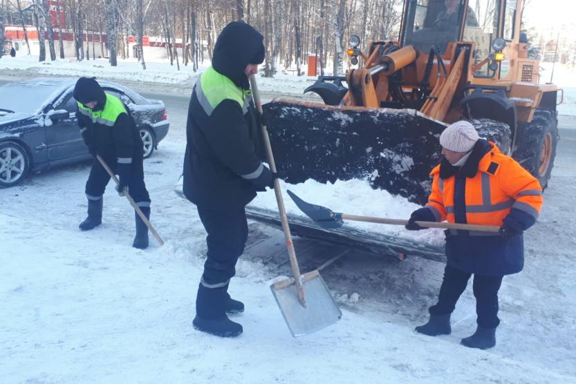 В выходные дни уборка снега в районе не прекращается