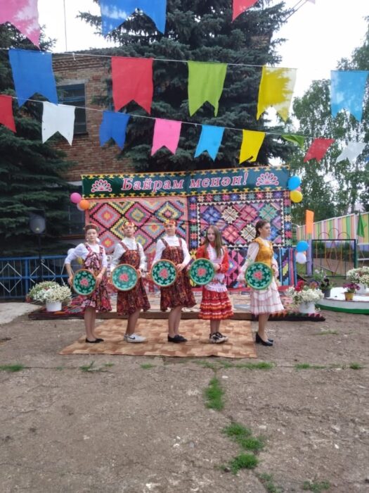 После совместной молитвы все поспешили на территорию средней школы, всех присутствуюших ждали удобные лавочки и украшенная сцена.