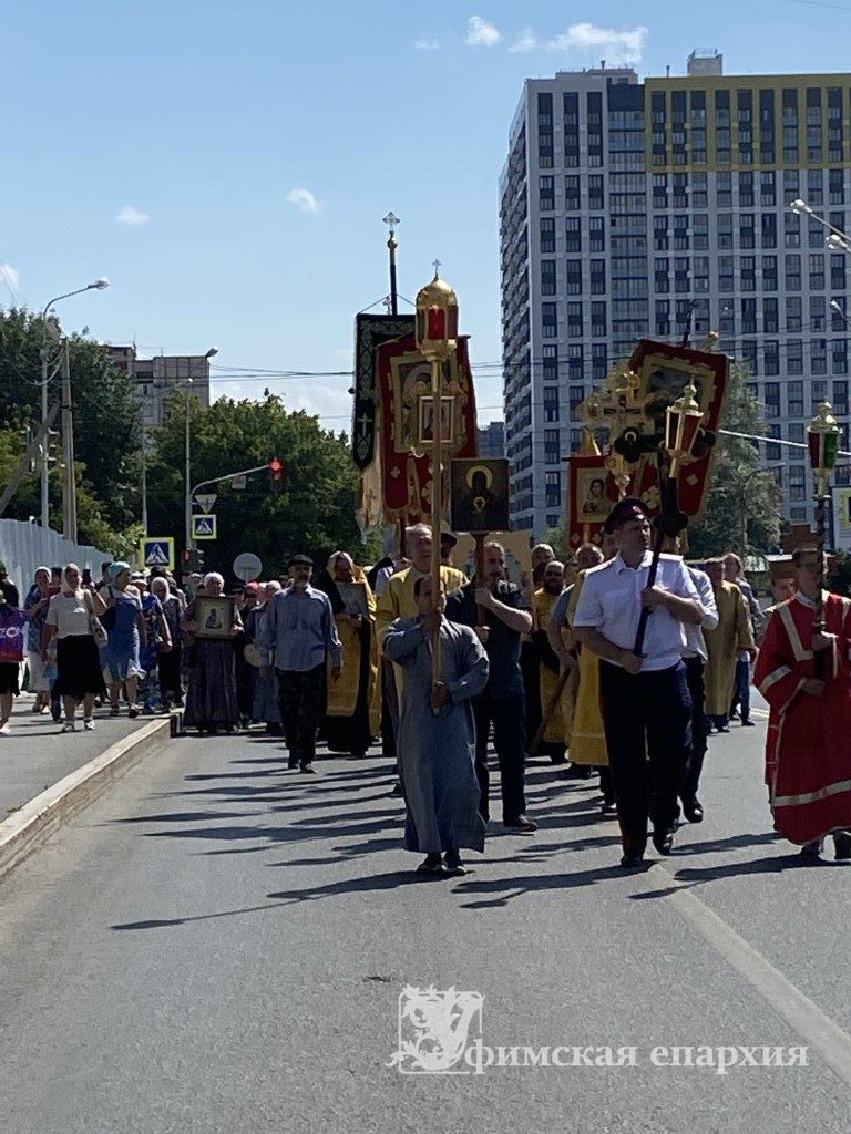 Крестный ход проследовал из Сергиевского, Покровского, Спасского, Симеоновского, Скорбященского храмов в Кафедральный собор Рождества Богородицы г.Уфы.