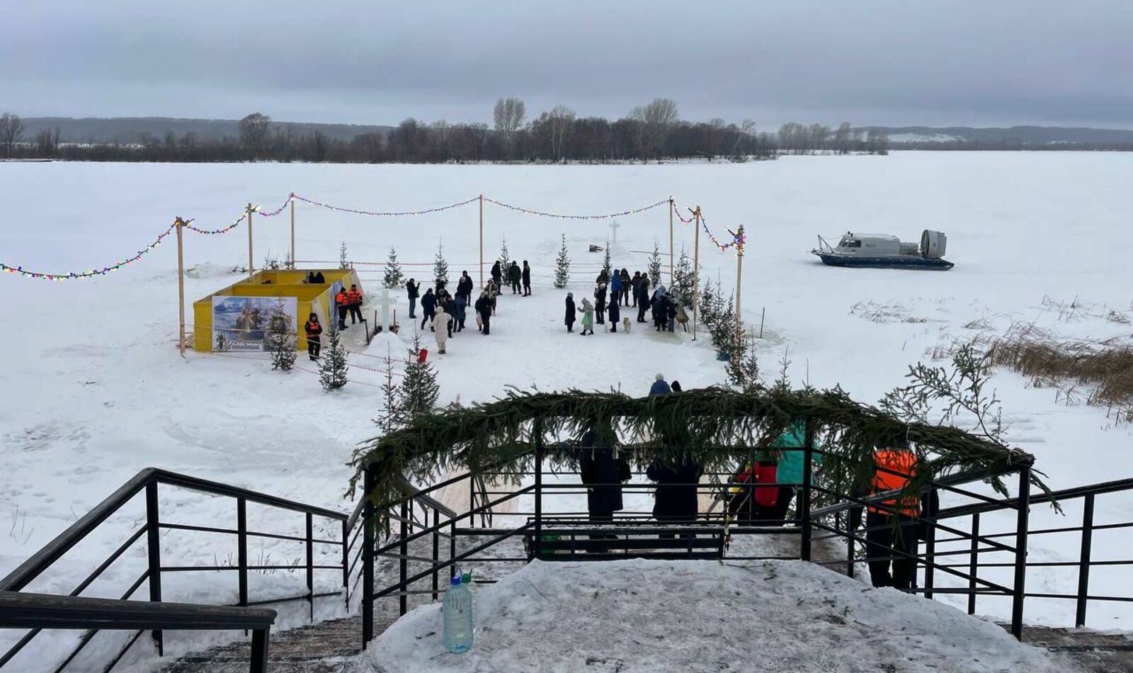 Для тех, кто ждал своей очереди или не решился окунуться, на берегу работали торговые точки с горячими напитками и угощениями. Люди согревались чаем, наслаждались свежим воздухом и праздничной атмосферой.