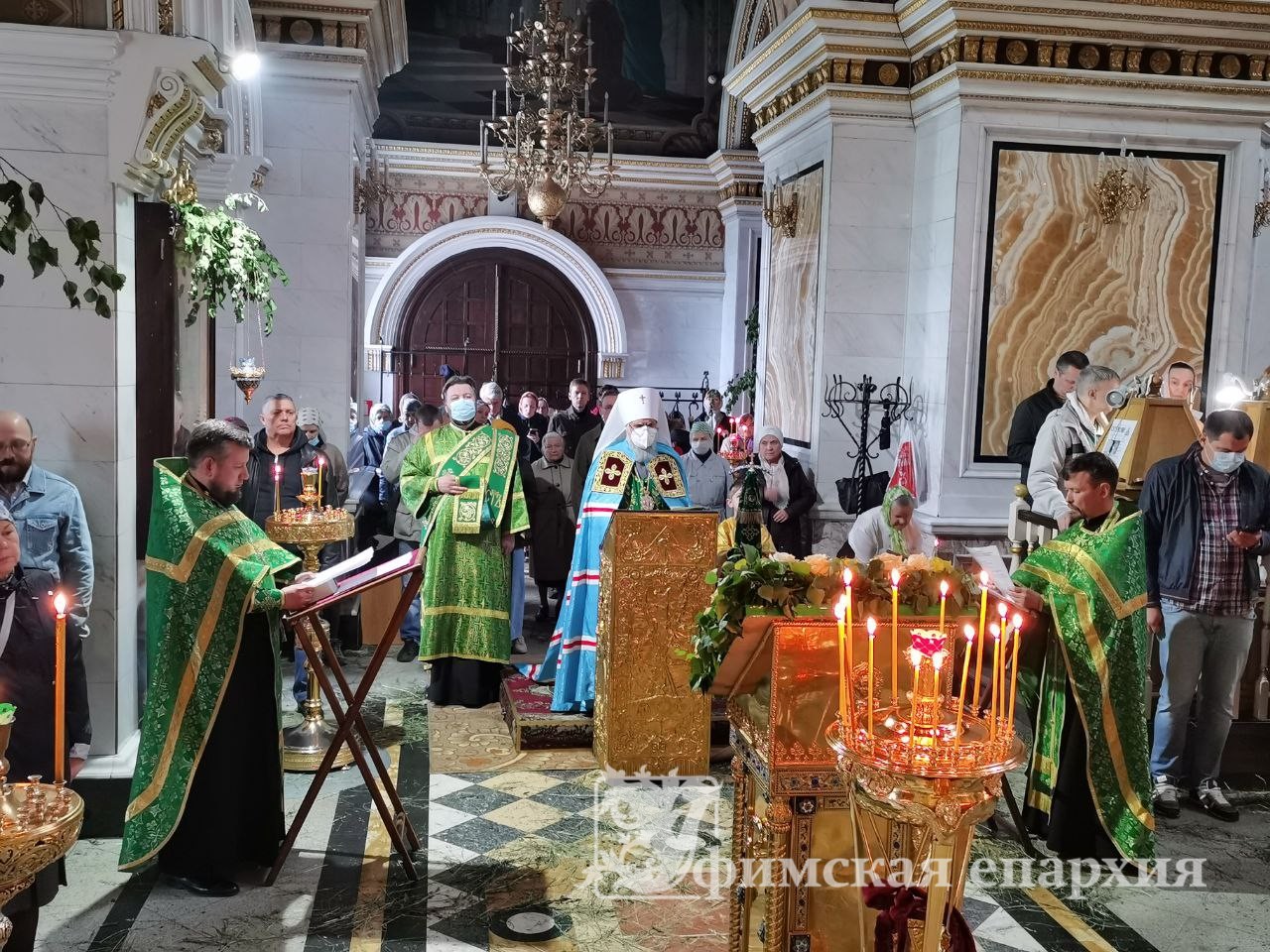 12 июня 2022г. митрополит Уфимский и Башкортостанский НИКОН возглавил вечернее богослужение с чтением акафиста ПРЕСВЯТОЙ ЖИВОНОЧАЛЬНОЙ ТРОИЦЕ в кафедральном соборе Рождества Богородицы г.Уфы.