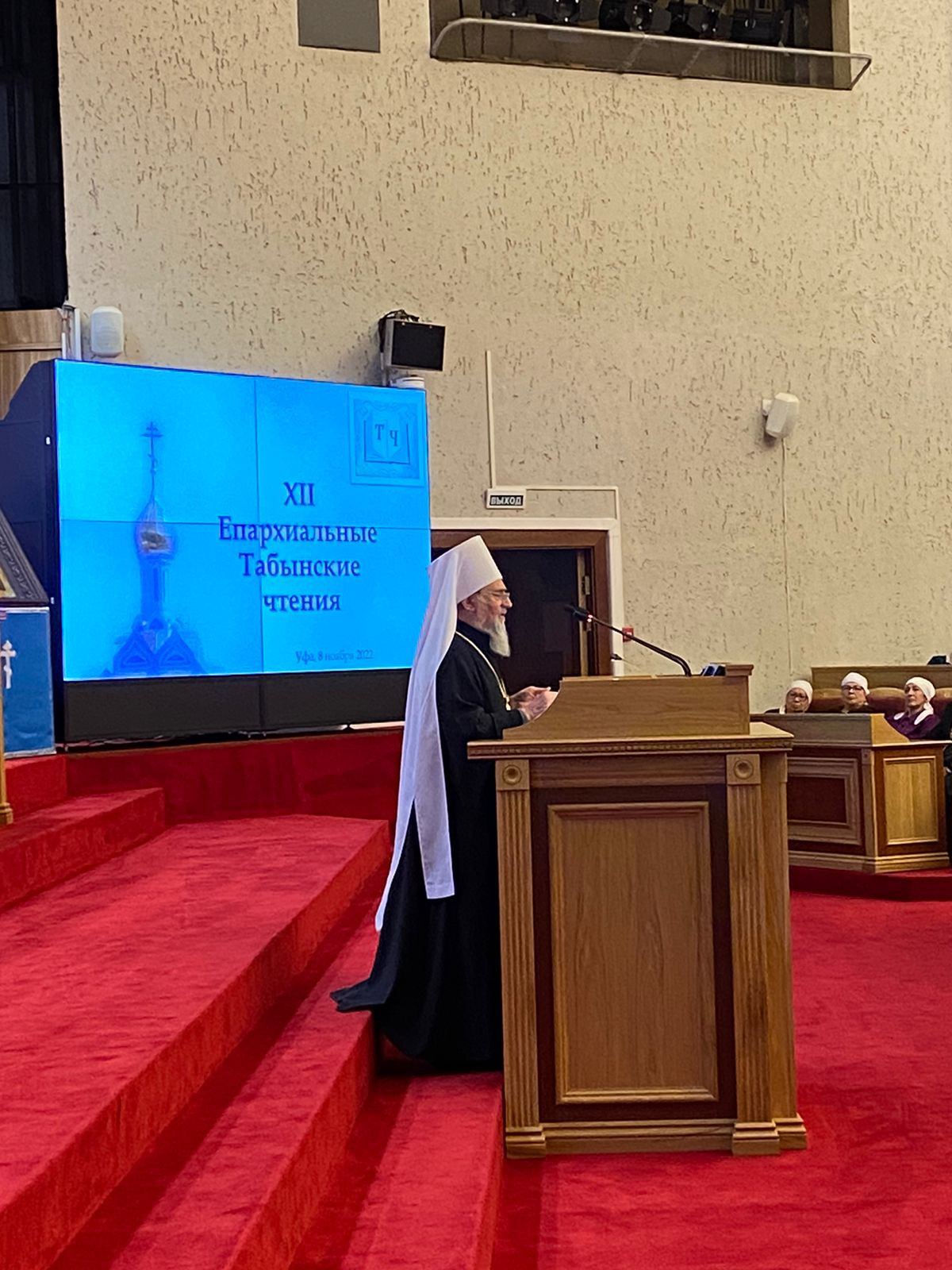 Искренне рад приветствовать вас на ХII Табынских чтениях Башкортостанской митрополии. В этом году мы расширили формат проведения нашего форума: XII Табынские чтения объединяют все четыре епархии Башкортостанской митрополии, научное сообщество, а также молодежные и общественные движения нашей республики на одной площадке. Такой масштаб мероприятия позволяет привлечь к соработничеству б?льшее число людей неравнодушных и радеющих о сохранении важнейших духовно-нравственных, культурных, семейных ценностей и прочих основополагающих принципов существования нашего народа. Сегодня мы вновь собрались вместе на нашем церковно-общественном форуме для обсуждения вопросов, связанных с важнейшими тенденциями, происходящими в современном обществе. Эти вопросы определяют проблемное поле нашей конференции и непосредственно касаются жителей нашей Республики, всей России, а также и зарубежного сообщества.