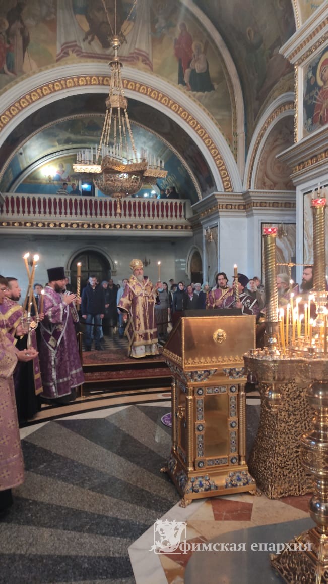 01 октября 2022г. накануне накануне Недели 16-й по Пятидесятнице, по Воздвижении, митрополит Уфимский и Башкортостанский НИКОН возглавил Всенощное бдение в кафедральном соборе Рождества Богородицы г.Уфы. Владыке сослужило духовенство собора. Диаконский чин возглавил первый соборный протодиакон Максим Коробицын. Пел хор под управлением З.Закировой.