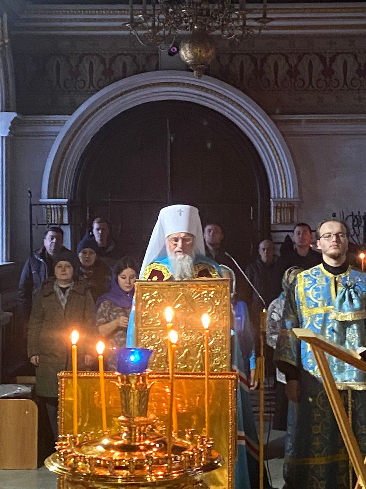 25 октября 2023г., накануне празднования в честь Иверской иконы Божией Матери, митрополит Уфимский и Башкортостанский НИКОН в кафедральном соборе Рождества Богородицы г.Уфы возглавил вечернее праздничное богослужение с общенародным пением акафиста Пресвятой Богородице перед Иверской Её иконой. Владыке сослужило духовенство собора.