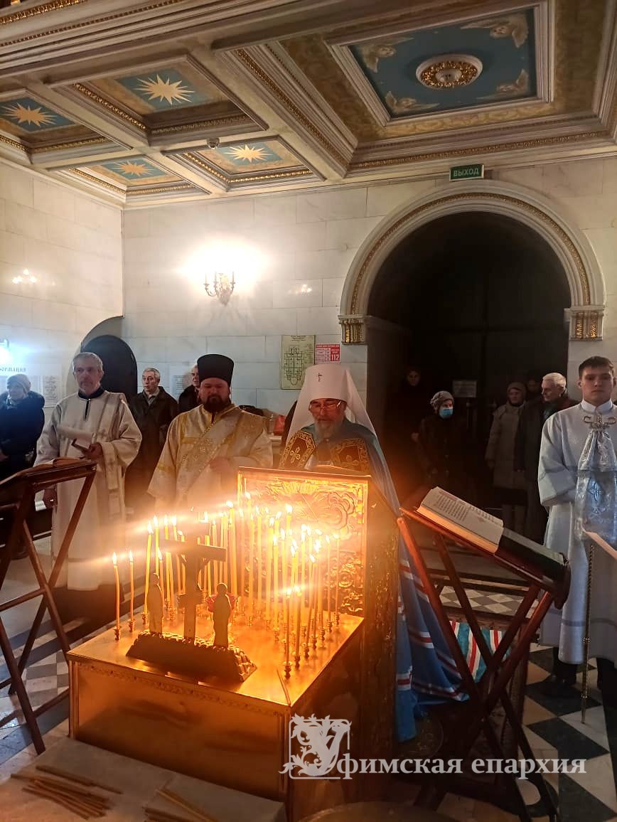 17 февраля 2023г. накануне Вселенской родительской (мясопустной) субботы, памяти всех от века усопших православных христиан, отец и братий наших, митрополит Уфимский и Башкортостанский НИКОН возглавил вечернее заупокойное богослужение с чтением 17-й кафизмы в кафедральном соборе Рождества Богородицы г.Уфы. Владыке сослужило соборное духовенство.