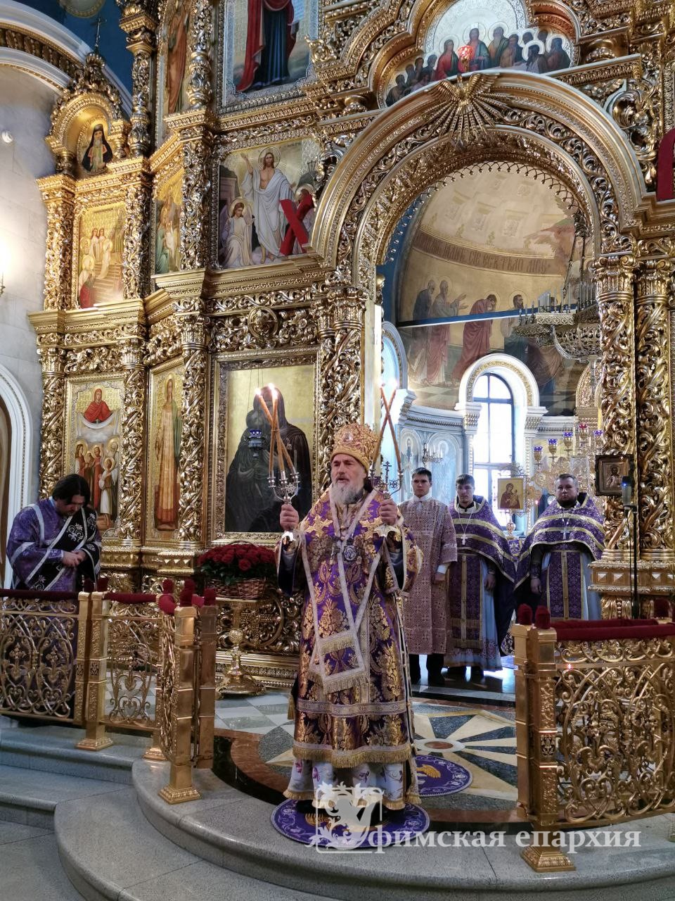 02 октября 2022г. в Неделю 16-ю по Пятидесятнице, по Воздвижении, митрополит Уфимский и Башкортостанский НИКОН возглавил Божественную литургию в кафедральном соборе Рождества Богородицы г.Уфы. Владыке сослужило духовенство собора. Диаконский чин возглавил первый соборный протодиакон Максим Коробицын. Пел хор под управлением Зои Закировой. Песнопения Евхаристического канона пел народ Божий под руководством соборного диакона протодиакона Рустика Латыпова.