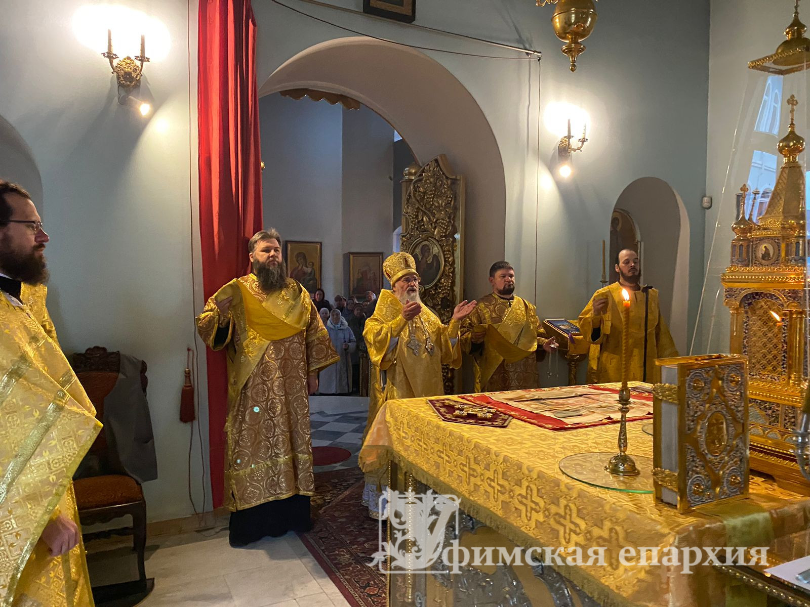 29 октября 2023г., в Неделю 21-ю по Пятидесятнице и день памяти мч. Лонгина сотника, иже при Кресте Господни и свт. Иоанна, митр. Тобольского, митрополит Уфимский и Башкортостанский НИКОН возглавил Божественную литургию в храме Богородско-Уфимской иконы Божией Матери в Инорсе г.Уфы. Владыке сослужил руководитель миссионерского и юридического Отделов епархии, старший священник храма иерей Дионисий Ефимов и духовенство прихода. Диаконский чин возглавил первый соборный протодиакон Максим Коробицын.