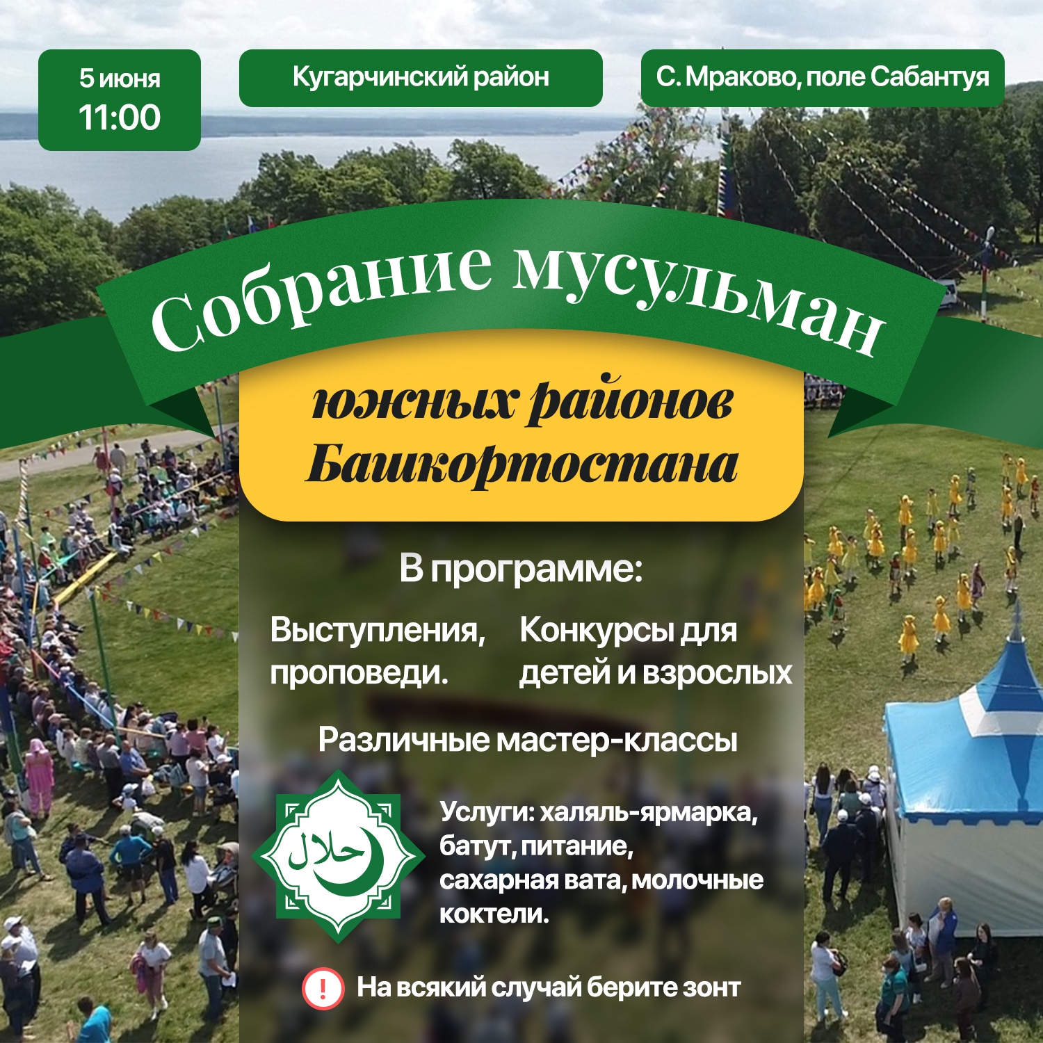 В воскресенье, в 11 часов в Кугарчинском районе, рядом с селом Мраково на поле сабантуя состоится «Собрание мусульман южных районов Башкортостана».