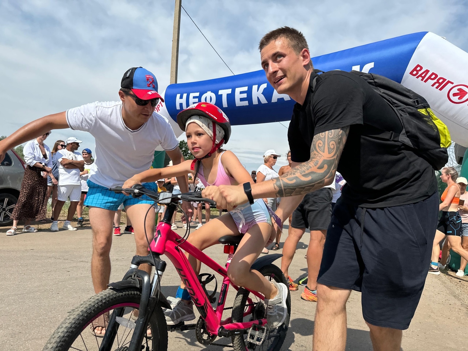 Триатлон начали дети двух лет с забега на 300 метров, им помогали родители. Среди мужчин 60 лет и старше первое место занял Валерий Гарейшин, которому 59 лет. Второе место у Владислава Аптраева, которому 64 года, и третье - у Святослава Галиханова, которому 61 год.