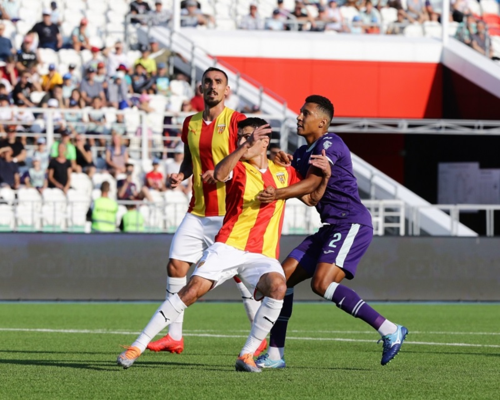 С первых минут матча гости больше владели мячом и пытались атаковать. Но до опасных моментов дело у обеих команд практически весь первый тайм не доходило. Лишь перед перерывом гости впервые получили право на угловой, который и использовали. Борьбу в воздухе выиграл и отправил мяч в сетку Бакаев.