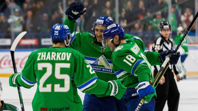 "Зеленое дерби". Фото: "Салават Юлаев" Нападающему «Салавата Юлаева» придется выплатить огромную сумму в качестве штрафа — миллион рублей.