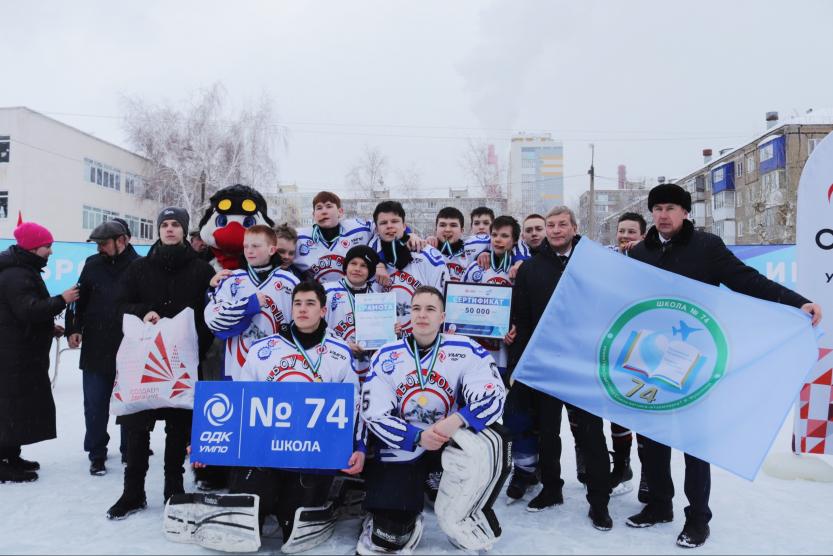 Сегодня на хоккейной коробке школы № 74 состоялось торжественное закрытие ежегодного турнира школьных команд по хоккею на кубок ПАО «ОДК-УМПО».