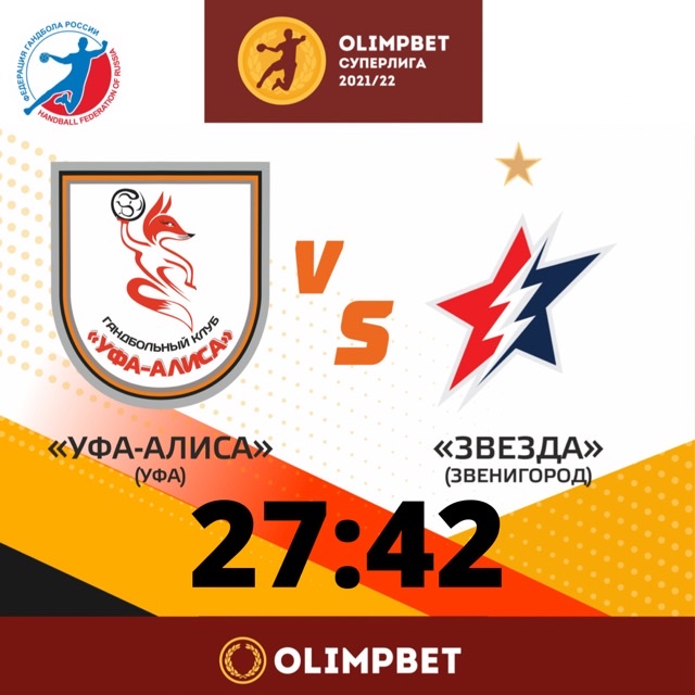 «Уфа-Алиса» уступила звенигородской «Звезде» в рамках 1/8 финала «OLIMPBET-Суперлиги» со счётом 27:42.