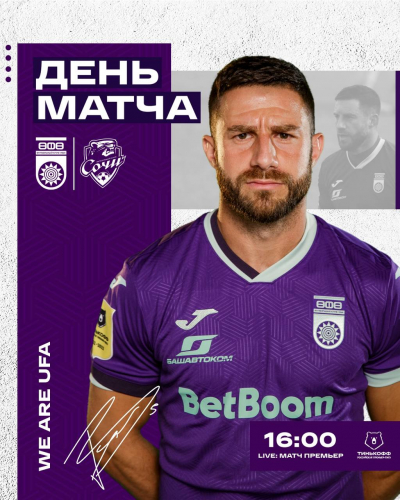 Сегодня, 10 апреля, Футбольный клуб «Уфа» в матче 24-го тура Тинькофф Российской Премьер-Лиги встретится с ФК «Сочи». Игра состоится в Уфе на «BetBoom Арене» в 16.00 по уфимскому времени.