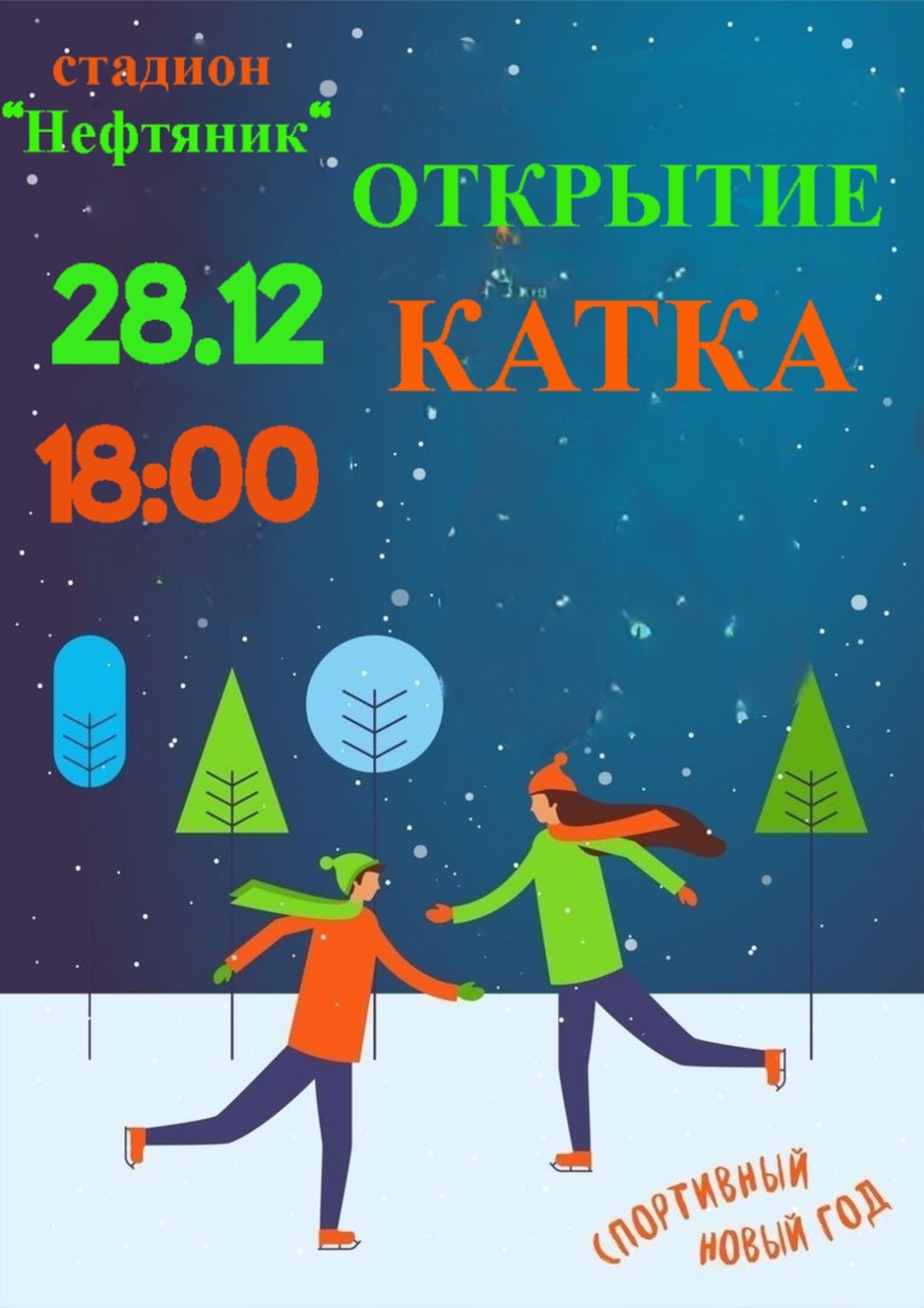 Завтра, 28 декабря, состоится открытие катка на стадионе «Нефтяник». Начало мероприятия — в 18 часов.