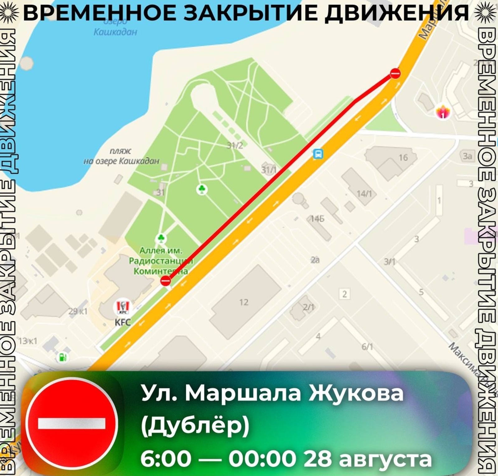 Завтра, 28 августа, с 6 часов до 24 часов будет закрыт проезд, проходящий вдоль парка «Кашкадан» – дорога-дублер улицы Маршала Жукова.