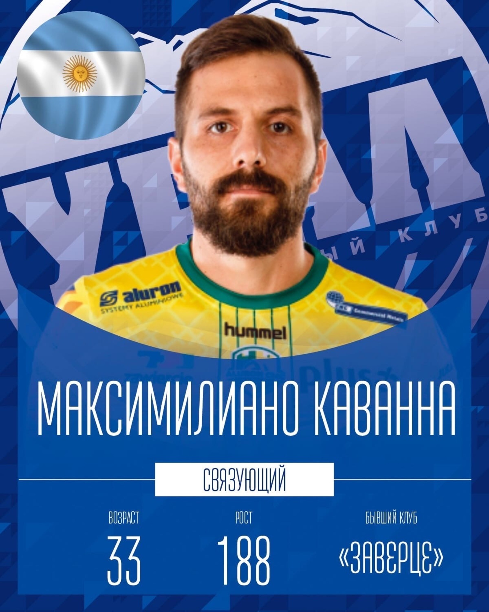 Контракт с ВК «Урал» сроком на один сезон заключил связующий Максимилиано Каванна. В минувшем сезоне 34-летний аргентинец выступал за клуб «Заверце», в составе которого стал бронзовым призёром чемпионата Польши, сообщила пресс-служба башкирской команды.