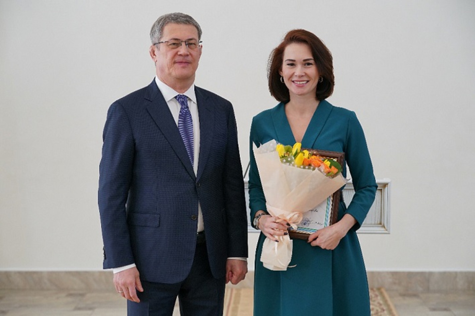 60 представительниц прекрасного пола получили государственные награды из рук главы Башкортостана Радия Хабирова — медали, почетные звания, грамоты и благодарности.
