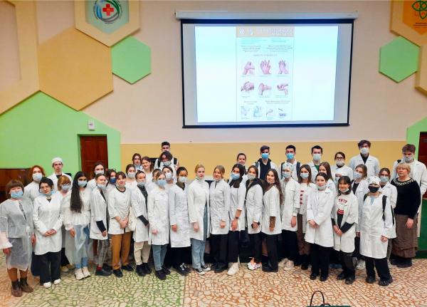 Школьникам продемонстрировали видеоролики на тему: «ГБУЗ РКБ им. Г. Г. Куватова» и «Санитарно-гигиеническая обработка рук», «Сердечно-легочная реанимация».