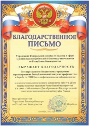 За успешную совместную работу в области обеспечения санитарно-эпидемиологического благополучия населения Республики Башкортостан Управление Федеральной службы исполнения наказаний по РБ отметило благодарственными письмами заместителя главного врача по медицинской части Зульфию Галиевау, заведующего эпидемиологическим отделом Роберта Давлетьянова.