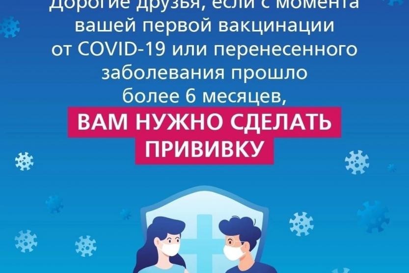Напоминаем вам о необходимости ревакцинации, если с момента вашей первой вакцинации от COVID-19 или перенесенного заболевания прошло более 6 месяцев.