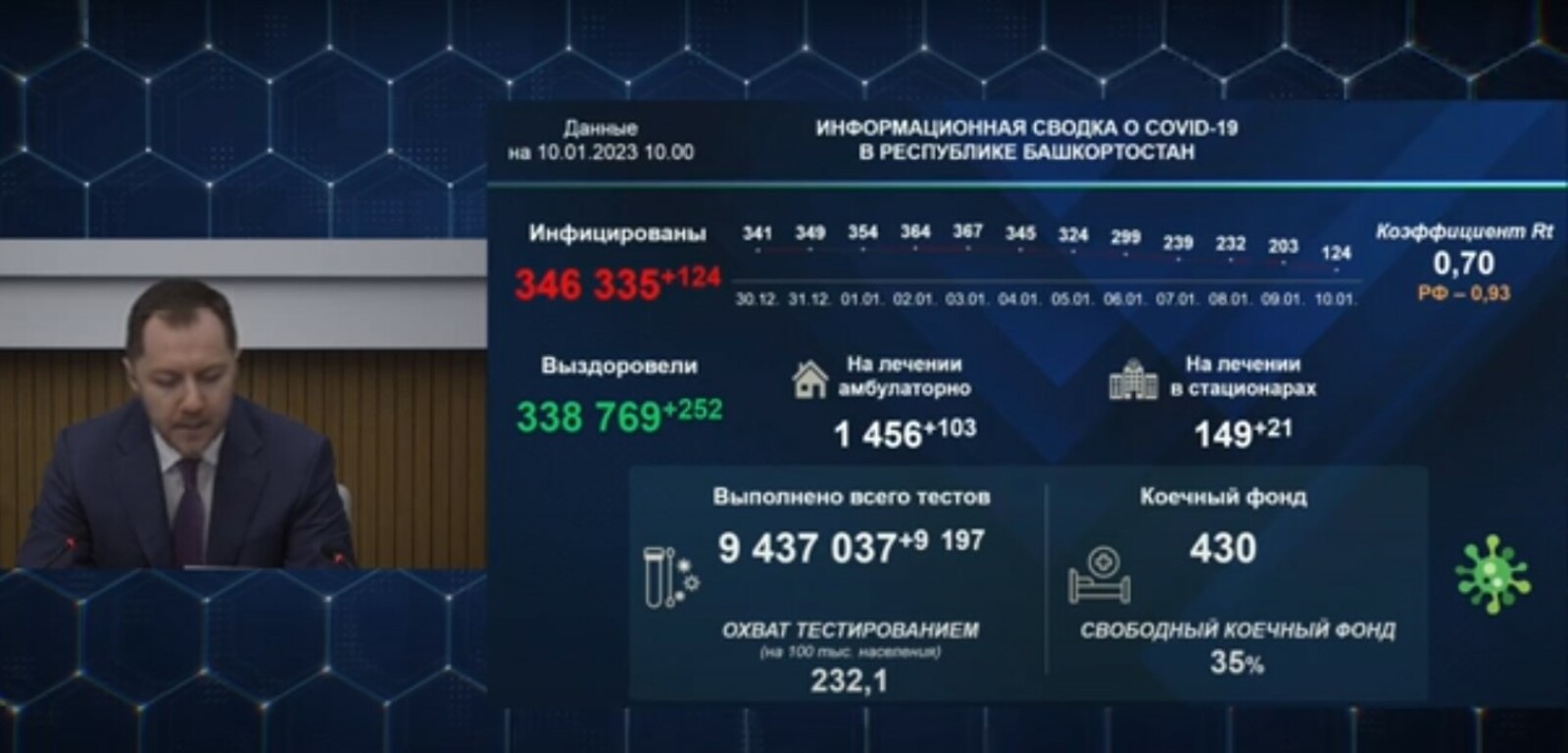 На 10 января в республике зарегистрировано 346 335 случаев новой коронавирусной инфекции с начала пандемии, сообщил на оперативном совещании в правительстве министр здравоохранения РБ Айрат Рахматуллин.