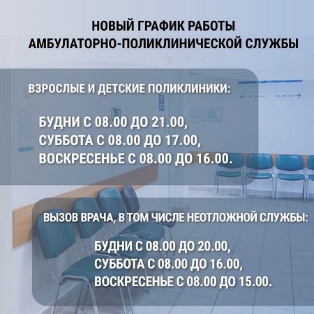 Как сообщил министр здравоохранения, чтобы медпомощь стала более доступной, увеличилось количество операторов контакт-центра 122 (доп. 2) в утренние часы, также колл-центр начинает работу в выходные дни. В связи с ростом заболеваемости ОРВИ и гриппа, увеличился режим работы поликлиник – в будние дни с 8.00 до 21.00 часов, с приемом вызовов до 20.00 часов. Подробнее смотрите в карточках.