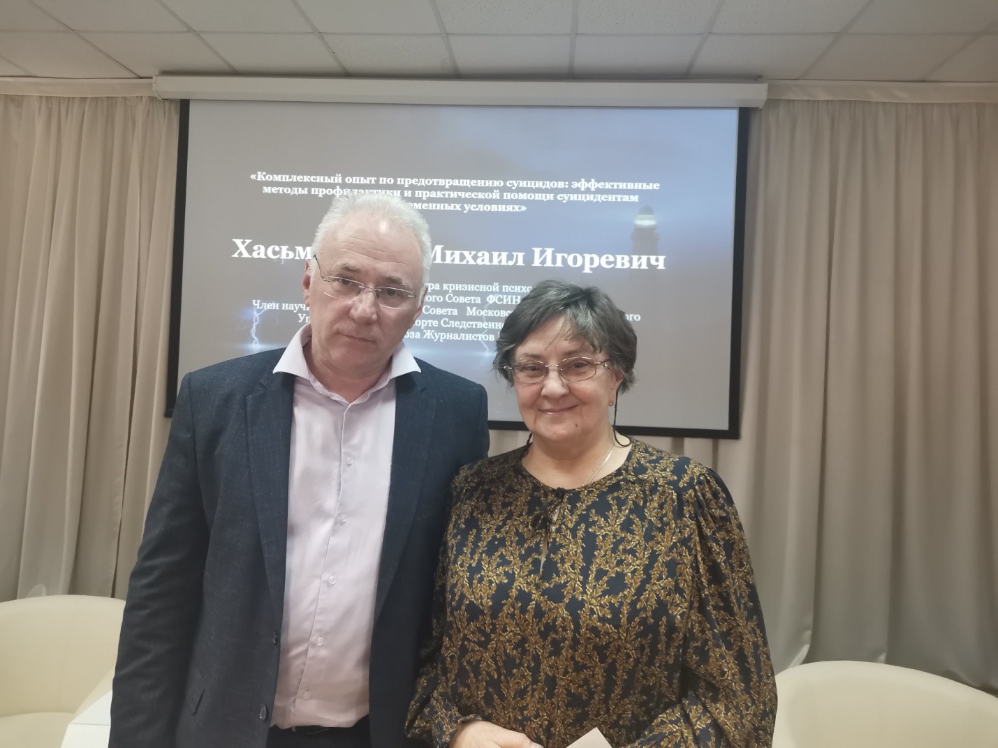 15 апреля 2024 года в конференц-зале Института развития образования РБ прошла встреча-семинар психологов образовательных и социальных учреждений, психотерапевтов лечебных и социальных учреждений с православным кризисный психологом Хасьминским Михаилом Игоревичем (Москва), (о нем: http://khasminski.ru/ ) на тему «Комплексный опыт по предотвращению суицидов и деструктивного поведения: эффективные методы профилактики и практической помощи».