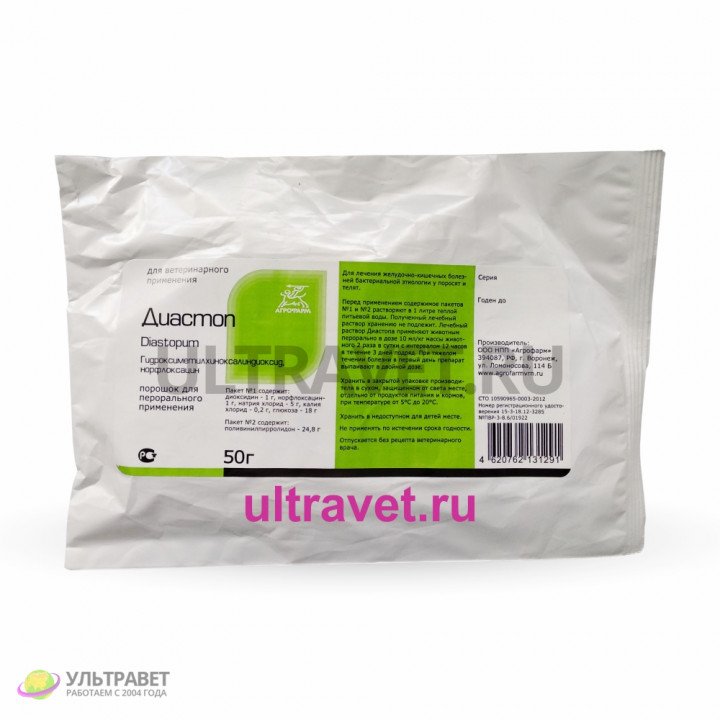 Управление Россельхознадзора по Республике Башкортостан информирует о выявлении несоответствия установленным требованиям качества образца лекарственного препарата «Диастоп» (серия 010122, срок годности 01.2024 и серия 170521, срок годности 05.2023) производства ООО «НПП «АГРОФАРМ» (Воронежская область) установленным требованиям по показателям «масса содержимого упаковки (средняя масса содержимого пакета № 2)», «потеря в массе при высушивании (пакет №2)», «количественное содержание (содержание 2,3 -Ди (гидроксиметил) хиноксалин-1,4- диоксида)», «количественное содержание (содержание суммы хлоридов натрия и калия» и «количественное содержание (содержание поливинилпироллидона)».